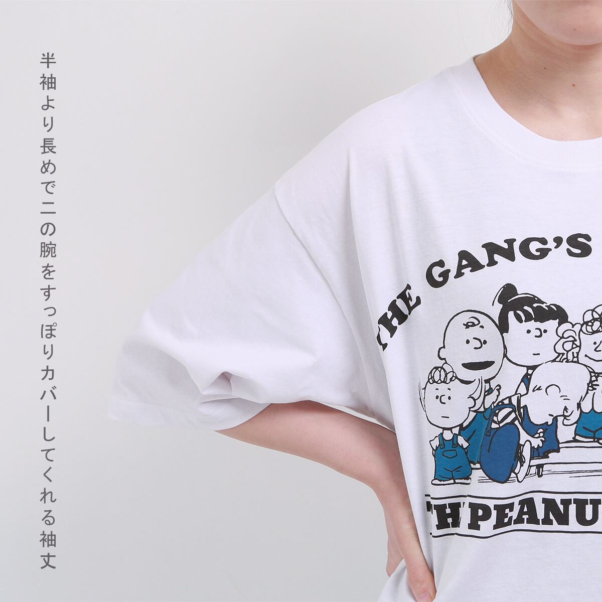 ピーナッツ・ギャングをプリントした、シンプルな中にもアクセントのあるフロントデザインです。