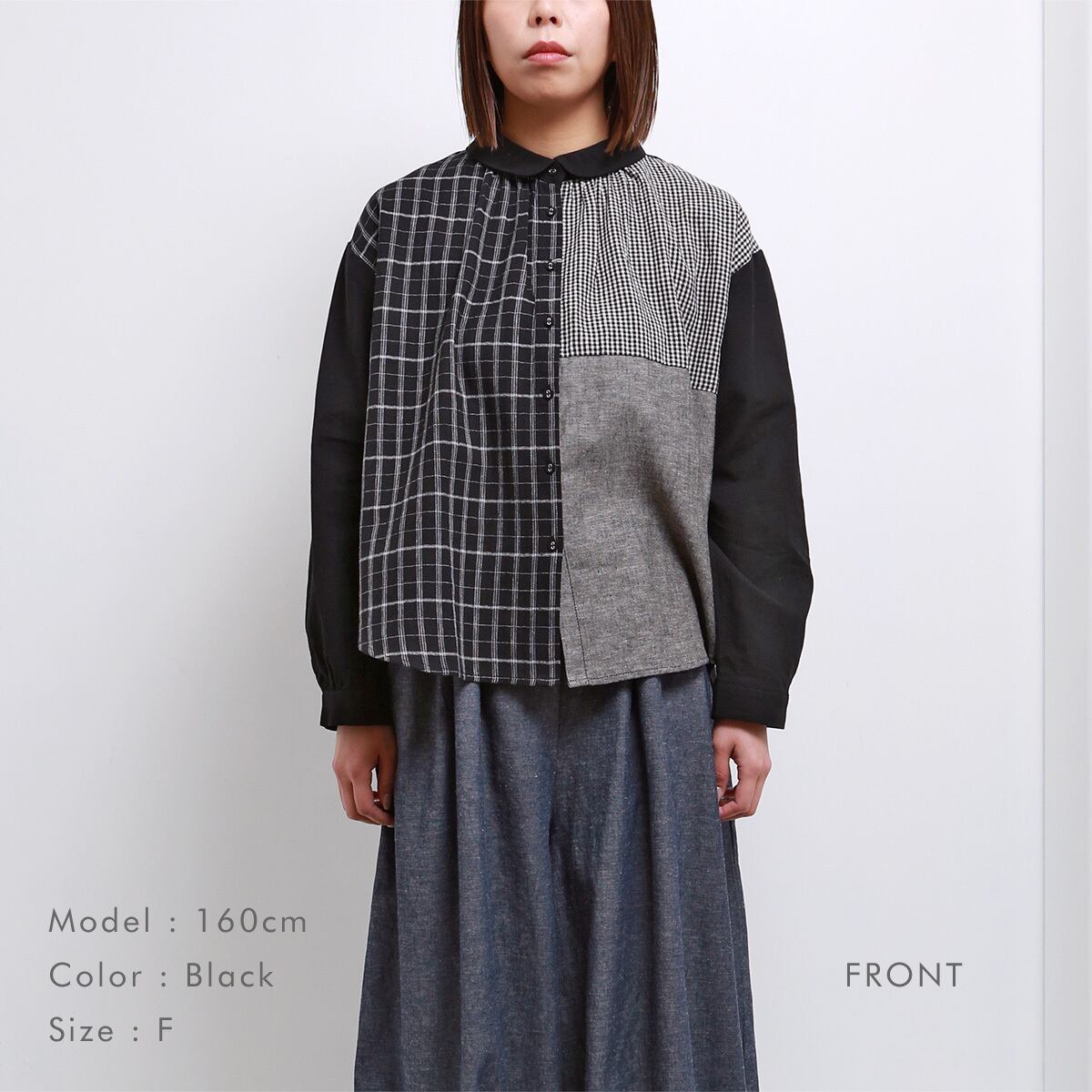 blue willow コットンリネン パッチワーク ブラウス レディース ブルーウィロー 01ESP11066 シャツ 服 長袖 40代 50代 ブランド 春 秋 冬 メール便(185円)対応