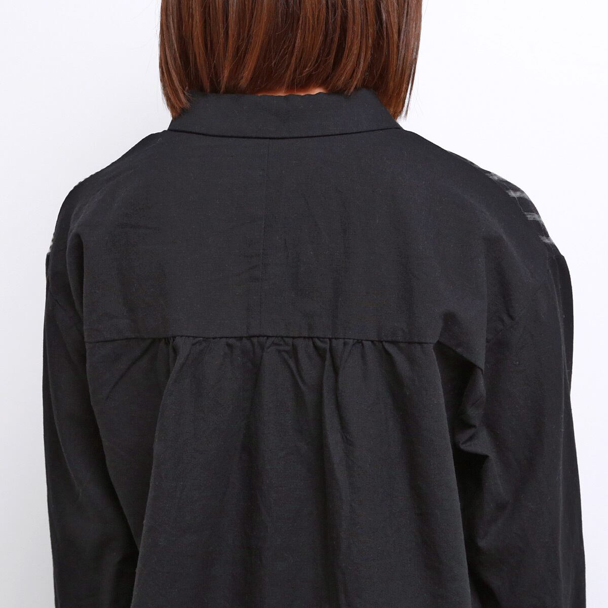 綿と麻の混紡素材にオリジナル先染めをほどこし、癒されるような風合いが印象的なブラウスです。