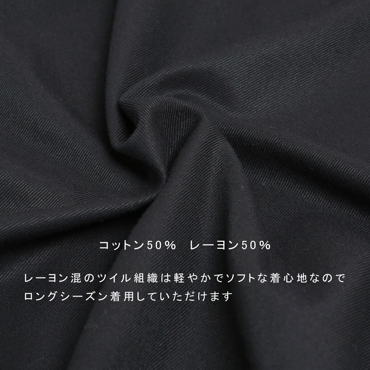 レーヨン混のツイル組織は軽やかでソフトな着心地なのでロングシーズン着用していただけます。