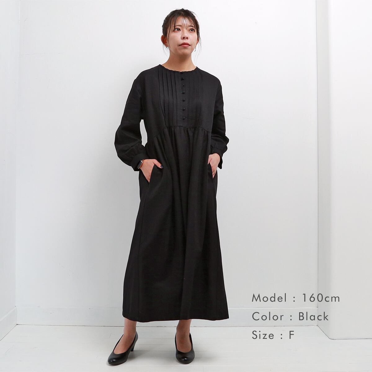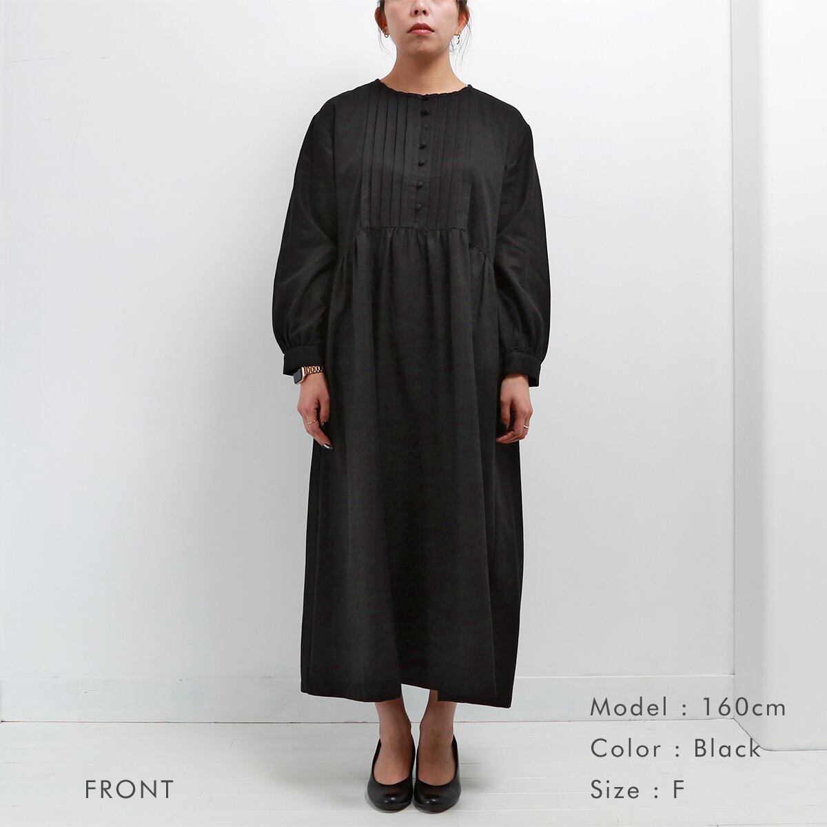 ・ピンタック、ループ仕様のくるみボタンが品の良さを感じられるワンピース