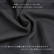 レーヨン混のツイル組織は軽やかでソフトな着心地なのでロングシーズン着用していただけます。