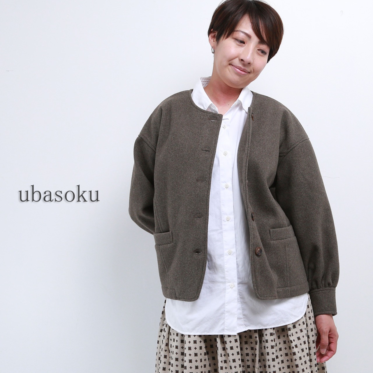 ubasoku ウールライクニット クルーネック4つ穴スコッチ釦裏付きブルゾン レディース ウバソク ub26-0742 おしゃれ アウター ショート丈 ブランド グレー 冬 秋 30代 40代 50代